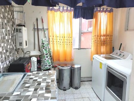 Planta baja: Sala y comedor corridos, cocina integral con doble tarja de acero inoxidable, estufa con 4 quemadores, horno, campana Mabe, refrigerador LG, horno de microondas pequeño y barra desayunador, área de lavado con lavadora de 19kg y secadora Mabe, calentador eléctrico CaloRex. Estudio o 3ra recámara con closet y medio baño con ventilación natural.