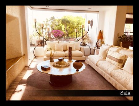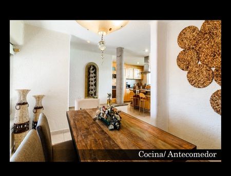 Hermosa propuesta arquitectónica con detalles especiales en cada espacio con excelentes acabados combinando lo tradicional como la piedra galarza , madera tzalam , vigas, nichos decorativos con líneas modernas cuyo resultado es fantástico y acogedor para vivir en armonía, en una de las zonas con aumento de plusvalía en Interlomas rodeada de todos los servicios necesarios.