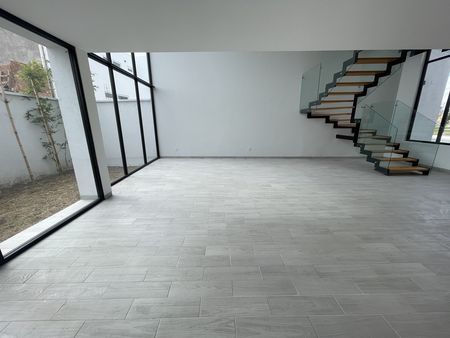 Estacionamiento para dos autos, amplia y luminosa estancia sala comedor, concina equipada y abierta, medio baño, cuarto la lavado, cuarto de servicio, cisterna de 5000 litros, hidroneumático, gas natural, calentador solar y eléctrico, loseta de interceramic.
