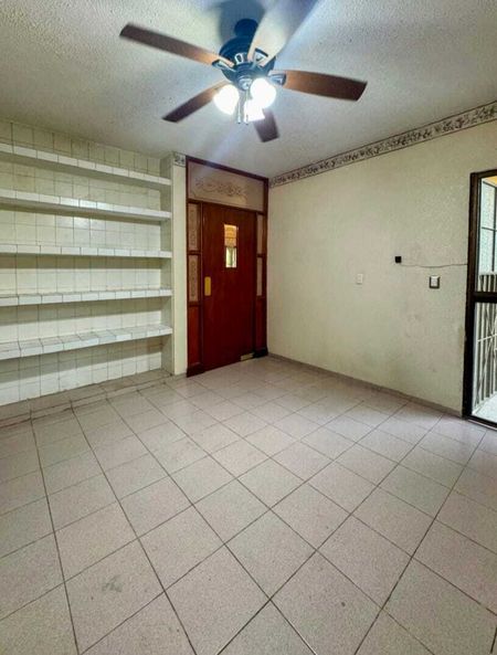 Planta baja: Cochera para 2 autos techados con reja eléctrica, sala y comedor con aire acondicionado, medio baño de visitas, cocina integral equipada, cuarto de servicio con baño completo, 2 bodegas, patio trasero, doble pasillo de servicio.