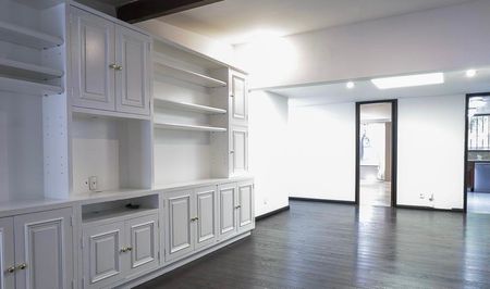 En el área privada 2 amplias recámaras secundarias con clóset y baño cada una, la recámara principal con baño, vestidor y espacioso tapanco que puede utilizarse como estudio, oficina, etc. Todas las habitaciones dan hacia un patio interior con fuente. En el área de servicio está la lavandería con clóset y área de tendido con ventilación natural, cuarto de servicio con baño y bodega.