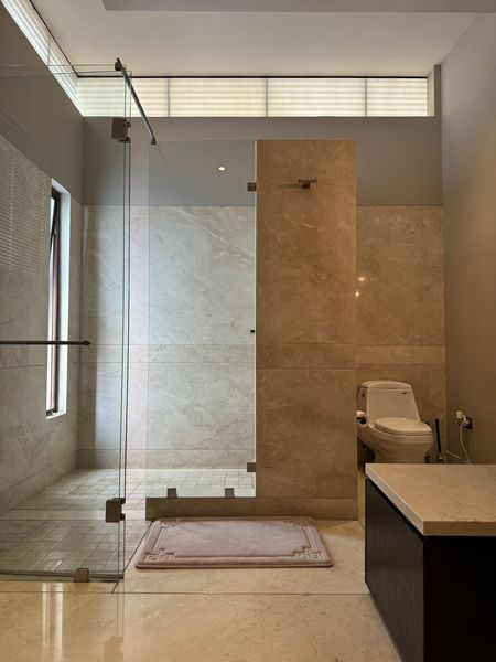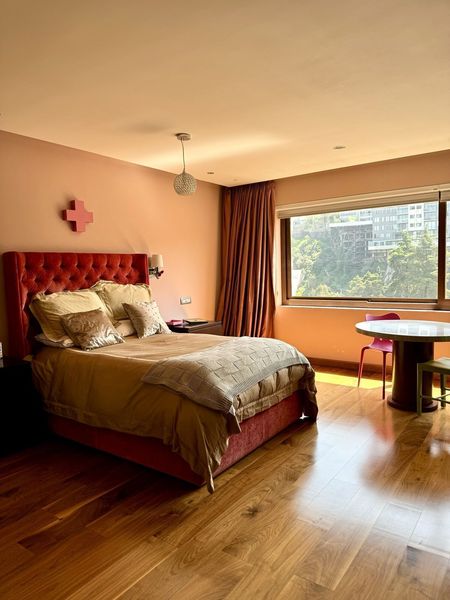 En el nivel superior hay 4 habitaciones con vestidor y baño. La principal tiene dos vestidores y dos baños. Arriba hay terrazas y balcones. Perfectamente bien ubicada está una sala de tele justo en el medio de las recámaras. Hay un amplio closet de blancos. Además de tener un motor lobby, cuenta con estacionamiento para 9 autos sin estorbarse. Hay tres cuartos de servicio con baños completos. También hay un cuarto de choferes. Cocineta para toda el área de servicio y 2 amplias bodegas. Lo mejor de todo es que la casa está rodeada de calles cerradas, es muy segura. Sin duda una joya de casa... ¿Agendamos?