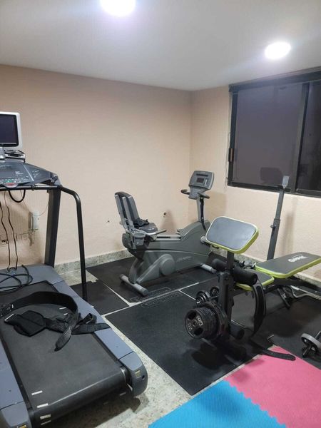 PB: amplio jardín, estacionamiento para 7 autos, habitación para visitas con baño (ocupada como gimnasio / sala de TV), terraza / patio, cuarto de servicio con baño, escalera de acceso a la casa, asador, cocineta, 2 medios baños, bodega.