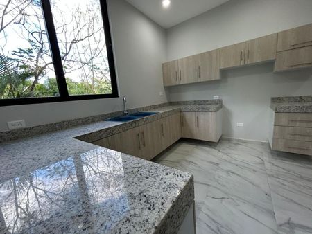 Tres recamaras cada una con baño completo, dos recamaras cuentan con vestidor y una con closet, la casa incluye ventiladores, aires acondicionados inverter y mosquiteros.