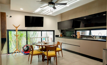 • Sala con área de bar y cine en casa