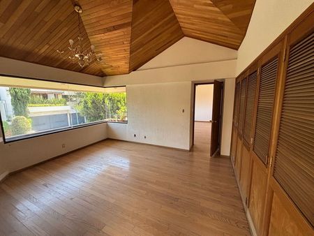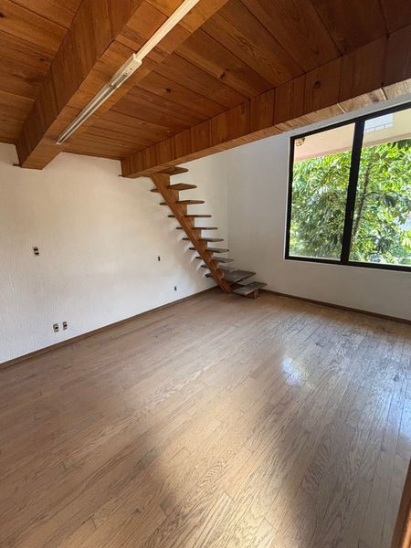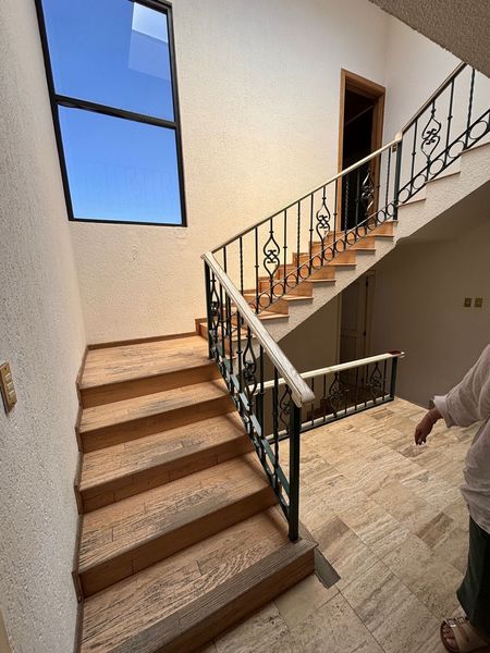 En el siguiente nivel se encuentran 3 recámaras más, la principal cuenta con amplios espacios, baño completo, vestidor, luz natural y techos altos de madera.