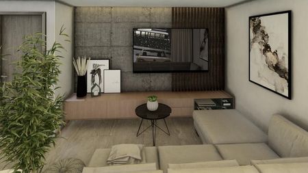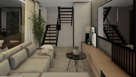 Zona de convivencia con chimenea de alcohol y 1/2 Baño.