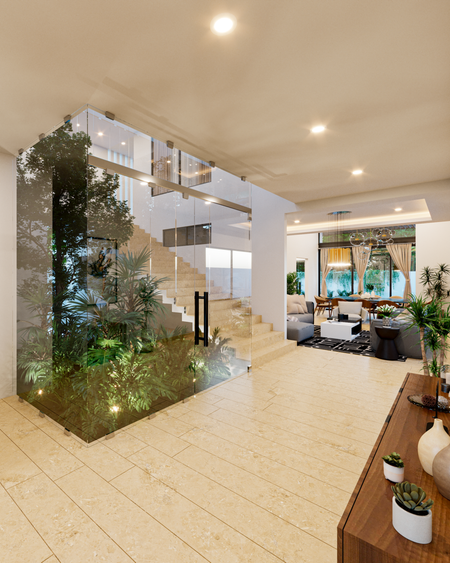 - Plafones con iluminación indirecta en sala, sala de tv y recámara principal