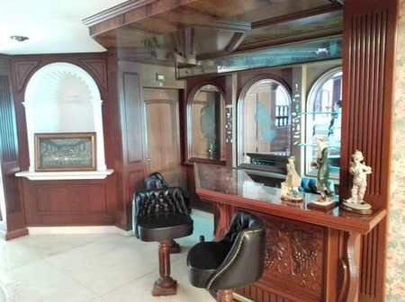 Consta de 700m2 de terreno, 600m2 de construcción. Distribuida en 2 niveles. Recibidor, sala con techo alto y chimenea revestida en caoba, 2da sala chica, comedor amplio, cocina principal integral grande, 2da cocina integral con desayunador, cuarto de despensa, medio baño de visitas, cuarto de TV, estudio amplio con techo de bóveda, área de descanso, bar con acabados de madera con cava, cuarto de lavado, jardín interior con árbol de maple japonés único en su especie (4 accesos a jardín), estacionamiento para 2 autos, entrada principal escalonada; recamara principal con vestidor, baño amplio y jacuzzi, 2da. recámara con clóset, vestidor, baño completo y jacuzzi, 3era. recámara con clóset, 4ta. recámara con clóset; baño completo.