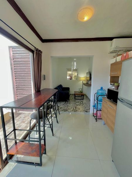 Distribución de los Espacios: La casa cuenta con una sala, barra desayunador, cocina.