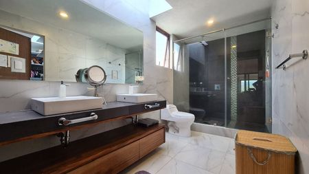 La recamara principal con baño completo, vestidor y un espacio que se puede ocupar como oficina o gimnasio.