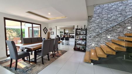 Está conectado con la cocina donde disfrutarás de una linda vista al jardín y de momentos inolvidables en familia ya que es un espacio que se puede adaptar como sala de tv o área de juegos para los pequeños del hogar.