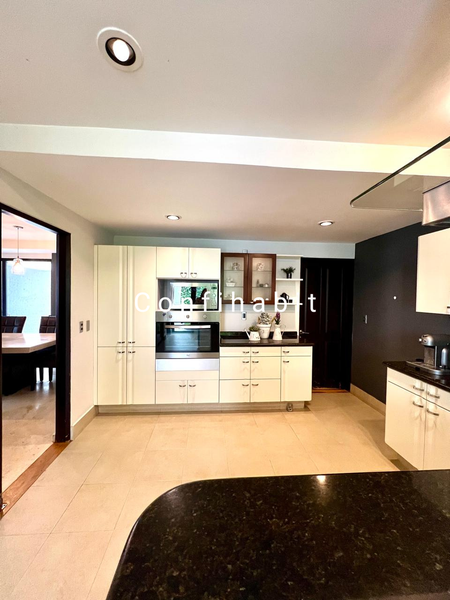 Garage para 4 autos, amplio y elegante vestíbulo, con medio baño de visitas y estudio, sala, comedor, cocina equipada con área de desayunador y despensa, 3 recamaras con baño y vestidor, Sala de TV, Cuarto de Lavado, Cuarto de servicio con baño completo