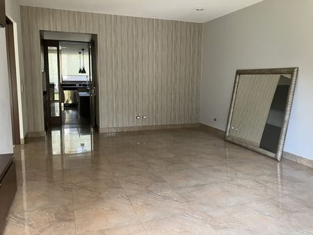 Casa moderna en venta en Fuente de las Águilas a media cuadra de av. de las Fuentes. Conjunto de dos casas con caseta de vigilancia para meter policía. construida en 2012. Excelentes acabados y ventanales grandes. Pisos de madera y mármol. Persianas enrollables. La planta baja cuenta con vestíbulo de entrada, Family con salida al jardín común, estudio, sala y comedor también con salida al jardín. Medio baño de visitas, cocina de muy buen tamaño. En planta alta cuenta con tres recámaras cada una con baño y vestidor y amplio cuarto de televisión. En sótano se encuentra el cuarto de juegos, lavandería y cuarto de servicio. Tiene espacio para seis coches cubiertos. Cuenta con paneles solares