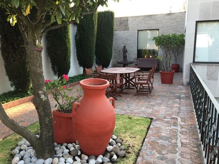 CASA EN ESQUINA MUY CERCA DE LA IGLESIA. MUY BUEN ESTADO DE CONSERVACION. MUCHA LUZ POR TODA LA CASA. VENTANERIA DE ALUMINIO Y SISTEMA ELECTRICO DE TODA LA CASA CAMBIADOS en 2013. TIENE CISTERNA. REJA ELECTRICA NUEVA. ESTANCIA CON CHIMENEA Y SALIDA A LA TERRAZA DE 75 MTS. COMEDOR AMPLIO. DESAYUNDADOR, COCINA CON ALACENA Y LAVANDERIA. RECAMARA CON SALITA PROPIA Y TERRAZA INDEPENDIENTE EN PLANTA BAJA. EN PLANTA ALTA 3 RECAMARAS, LA PRINCIPAL CON VESTIDOR Y BAÑO, LAS OTRAS 2 CON CLOSETS Y COMPARTEN BAÑO, SALA DE T.V. Y ESTUDIO. PISOS DE MADERA, PARQUET Y GRANITO. PERSIANAS ENROLLABLES EN TODA LA CASA. PRECIOSO JARDIN UNIDO A UN SALONCITO DE JUEGOS CON OTRO MEDIO BAÑO. HAY QUE ACTUALIZAR COCINA Y BAÑOS. ESTACIONAMIENTO CUBIERTO PARA 6 COCHES.