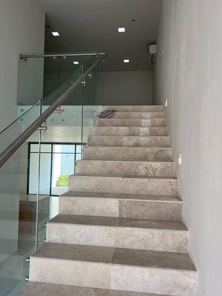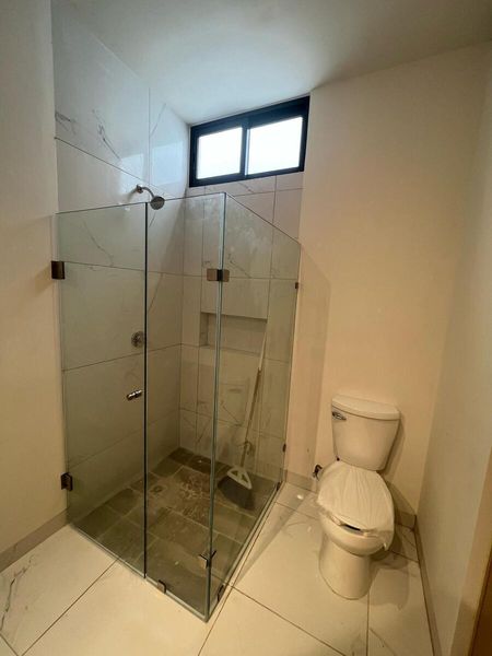 • Cancelería con aluminio y cristal transparente de 6mm.
