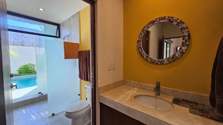 - Recámara principal con closet vestidor y baño completo con salida directa a la alberca desde la regadera.