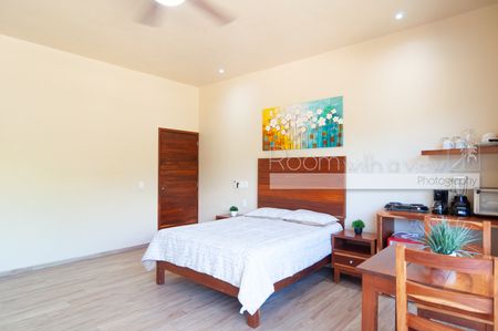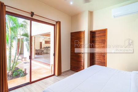 En el interior, el diseño de concepto abierto crea una integración perfecta entre los espacios interiores y exteriores. Las puertas corredizas de la sala se retraen por completo, conectando el área social con una soleada terraza y una alberca privada con cascada. Cada recámara funciona como una suite tipo estudio con su propio baño y área de estar, brindando privacidad y versatilidad excepcionales para huéspedes o para rentas vacacionales.
