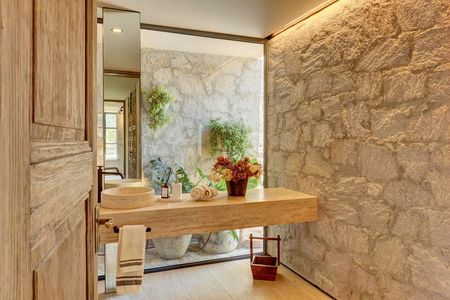 Paredes de piedra que añaden un toque rústico y sofisticado.