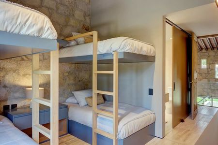 Cada uno de los cuatro dormitorios incluye su propio baño privado con acabados de lujo. El dormitorio principal, ubicado en la planta baja, es un oasis de tranquilidad. Un dormitorio adicional cuenta con literas empotradas, ideales para familias. La sala de televisión puede transformarse en un quinto dormitorio, adaptándose a tus necesidades.