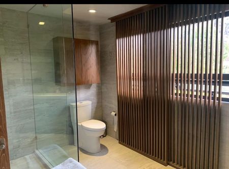 Cuarto de vigilante con baño completo en el estacionamiento.