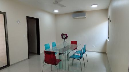 3 recámaras con clósets vestidos, baño, aire acondicionado y ventiladores