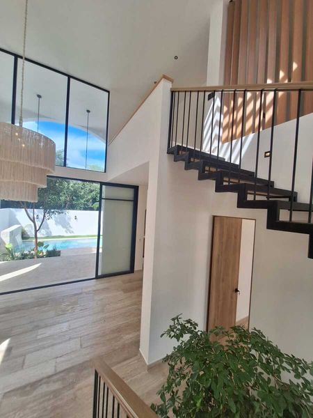 Esta residencia combina un elegante estilo mediterráneo, con acabados en mármol y piedra natural. Su imponente diseño arquitectónico ofrece alturas de hasta 8 metros, espacios amplios y una iluminación natural excepcional.
