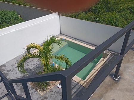 Terraza en planta alta con vista a la piscina.
