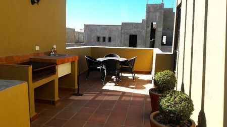 Cuenta con patio interior, cocina con barra desayunador, Roof Garden con medio baño, asador, vista a las montañas.