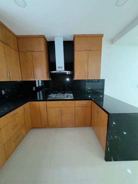 - Cocina integral con granito incluye refrigerador de 2 puertas, estufa con campana, horno y microondas.