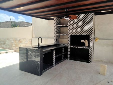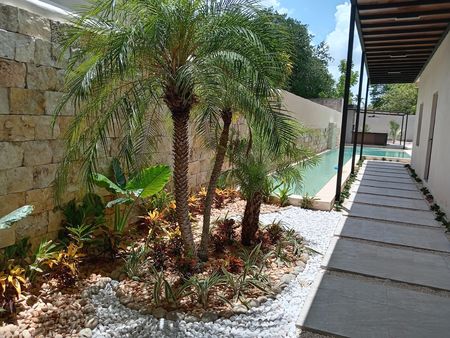 Piscina 4m de ancho y 8m de largo y cascada con acabados Chukum