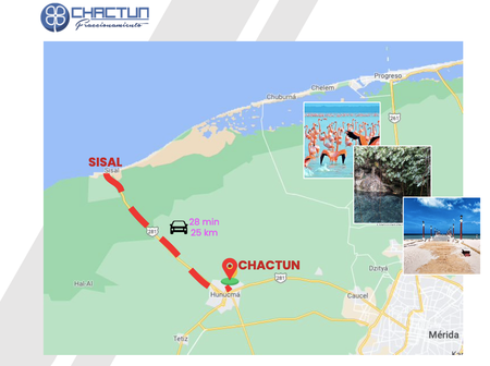 El puerto principal más cercano, es Sisal ubicado unos 10 km. al norte de la cabecera municipal. El fraccionamiento se encuentra a 5 minutos del centro de Hunucmá en donde la Arquitectura y su belleza no tienen igual, además los grandes atractivos