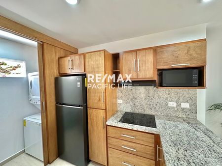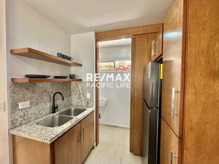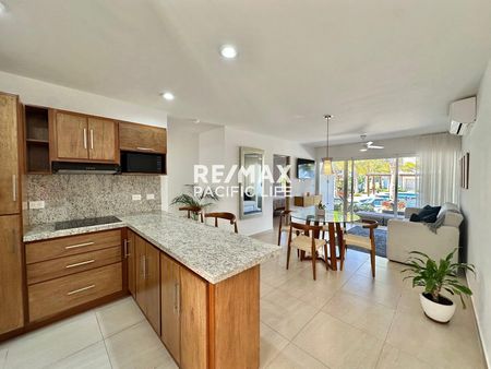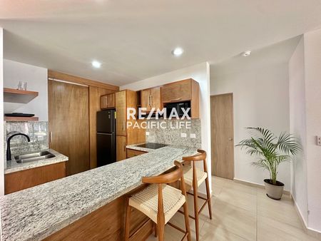 Este moderno espacio cuenta con dos recámaras, dos baños completos, área de lavandería, cocina integral, completamente amueblado y equipado, con una amplia terraza privada, ideal para relajarte y disfrutar de su espectacular vista a la alberca climatizada. Gracias a su diseño y grandes ventanales, el departamento recibe abundante luz natural, creando un ambiente cálido y acogedor.