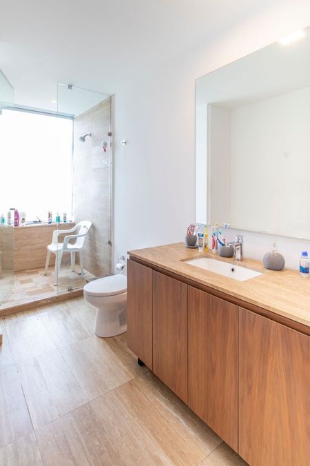 La cocina es abierta lo que permite tener reuniones en familia sin perderse de nada y compartir con los amigos, 3 recamaras cada una con su baño y una vista genial.