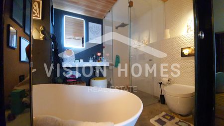 Este departamento moderno y de buen gusto ofrece todas las comodidades necesarias para una vida cómoda y funcional. La cocina integral está completamente equipada con estufa eléctrica, refrigerador, microondas y una cava de vinos.