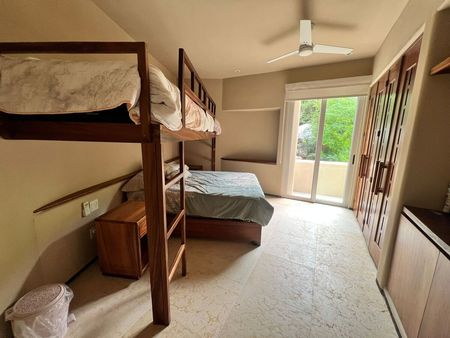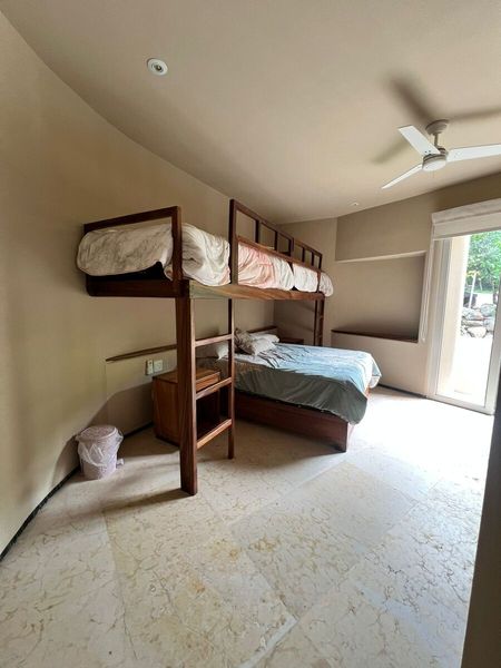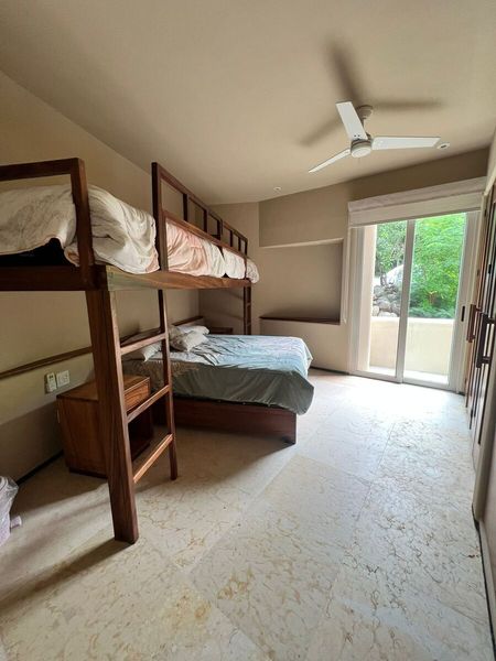 1 con dos literas laterales y 1 cama matrimonial, habitación amplia) con clóset y barra de tocador y burós.