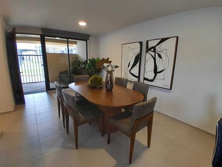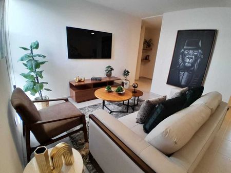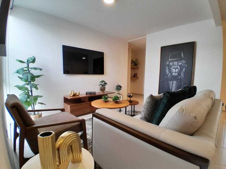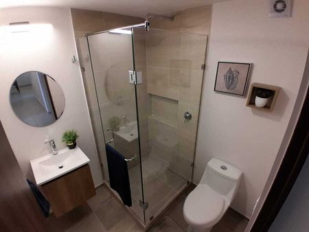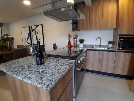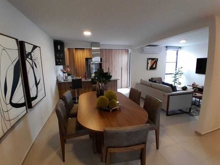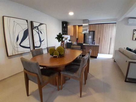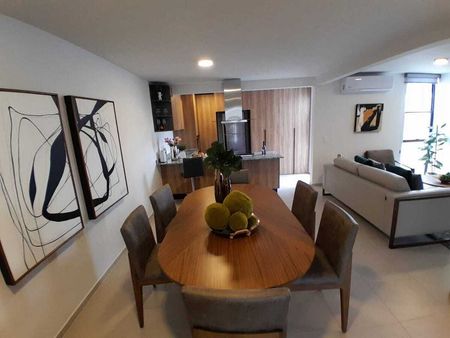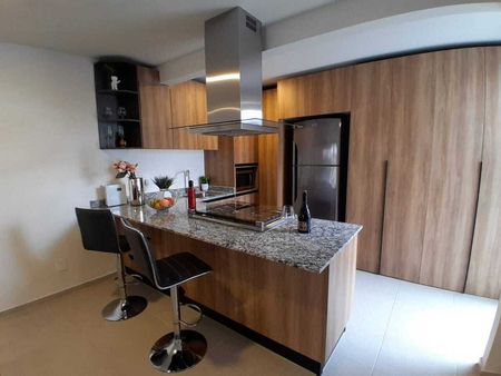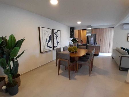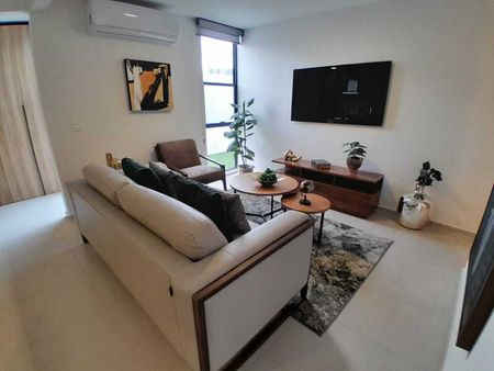 Terraza techada, sala, comedor y cocina abierta, jardín interior, sala de tv o Flexspace. Dos recámaras con baño cada una, closet de piso a techo, totalmente equipados.