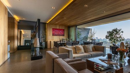 El departamento tienen frente al fraccionamiento Bosques de Santa Fe, por lo que tiene fabulosas vistas del club de golf y del verde de la cañada.