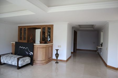 Es un amplio departamento, ya que cuenta con 460mts tiene 3 habitaciones cada una con su vestidor y baño completo, la principal además de contar con espacios muy generosos tiene incluye Jacuzzi. El departamento tiene una Sala comedor, espacio para oficina, bar, otra sala y biblioteca. Amplia cocina, cuarto de ropas y dos habitaciones de servicio.