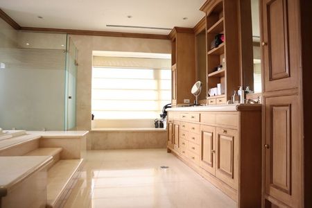 Es un amplio departamento, ya que cuenta con 460mts tiene 3 habitaciones cada una con su vestidor y baño completo, la principal además de contar con espacios muy generosos tiene incluye Jacuzzi. El departamento tiene una Sala comedor, espacio para oficina, bar, otra sala y biblioteca. Amplia cocina, cuarto de ropas y dos habitaciones de servicio.
