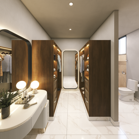 gabinetes inferiores y superiores en cocina, espejos de baño con tira led, closets semivestidos con tira led