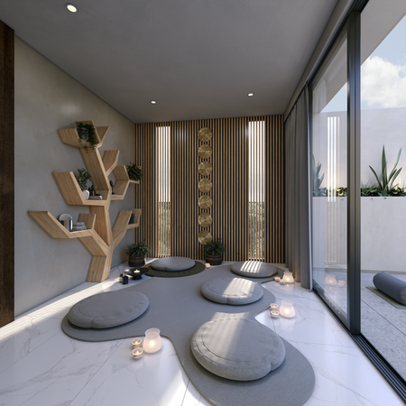 Amenidades: Lobby, CCTV, bussines center, área de yoga, área de meditación, área de terapia, gimnasio, área de fogata, grill bar y alberca.