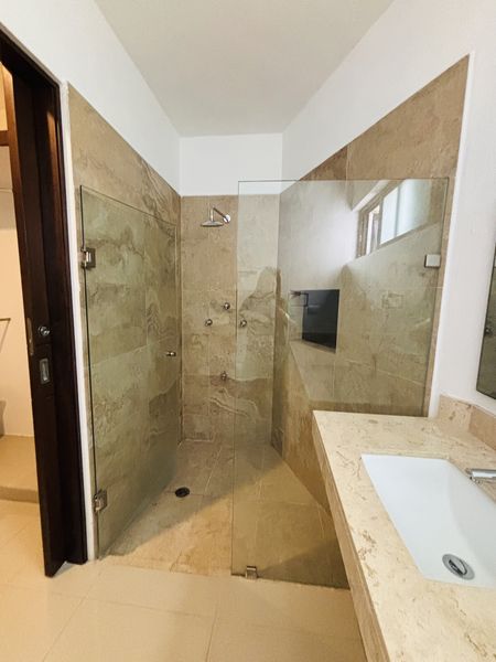 El departamento cuenta con aires acondicionados, ventiladores de techo, una pantalla.