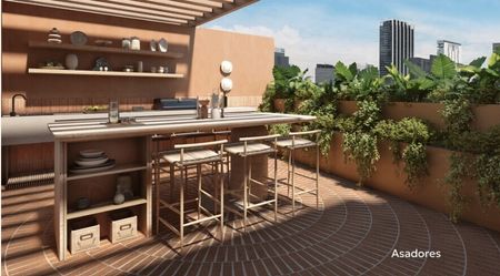 Cuenta con: jardin, bodegas, asadores, roof office, gimnasio, lavandería, roof office y biciestacionamiento.