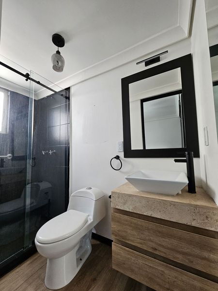 Entre las amenidades se destaca una cocina integral moderna, balcón, elevador para fácil acceso, y un sistema de seguridad que garantiza tranquilidad. Adicionalmente, se dispone de una sala de lavandería y vigilancia 24/7 para comodidad y protección de los residentes.