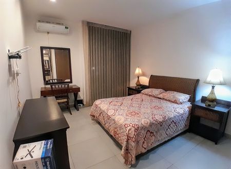 *Habitación principal: cama Queen,2 buros, 2 lamparas, cabecera, closet, mueble aire acondicionado y ventilador