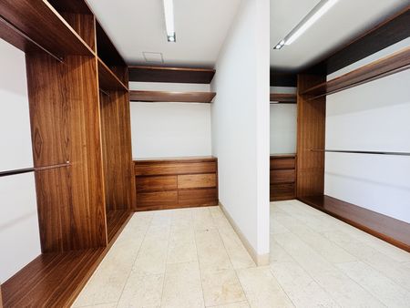 - **High-End Finishes**: Egyptian marble flooring, automatic blinds, walnut wood accents throughout, and Brazilian black slate in living areas.