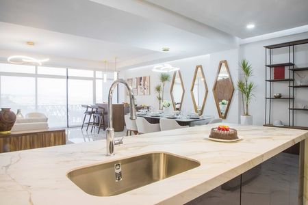 Espacio de sala comedor con concepto abierto ventanal que conecta con el balcón con vista panorámica a los arcos.