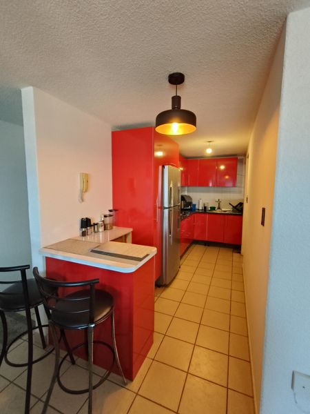 Amplia sala-comedor, cocina integral con barra desayunadora. Cuenta con área de lavado, 1 baño completo y 2 recámaras con clóset 2 lugares de estacionamiento