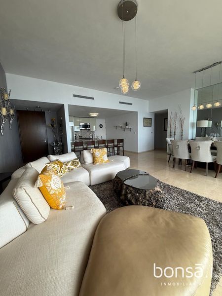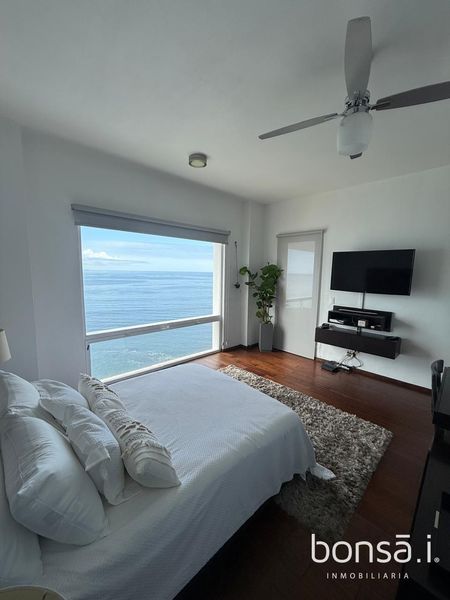 If you like to enjoy a beautiful oceanfront view and live with the comforts and amenities of a private condominium, you will love this elegant furnished and equipped condo, has 2 bedrooms each with its own bathroom, comfortable and elegant living room, dining room, open concept kitchen, laundry area, half guest bathroom, nice terrace with spectacular ocean view.